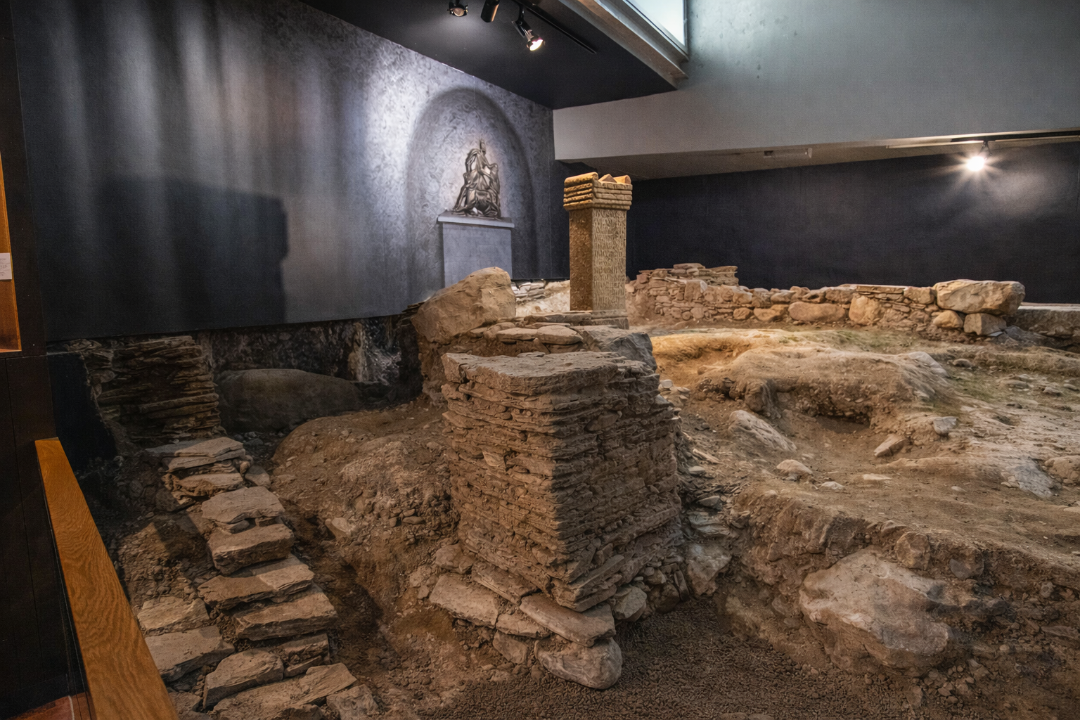 Uno de los aspectos mas impresionantes del museo es la excavación profunda, siete metros por debajo del nivel actual de la ciudad de Lugo. Esto permitió apreciar algo verdaderamente excepcional, la base original de la Muralla Romana de Lugo, un tesoro de la Humanidad.