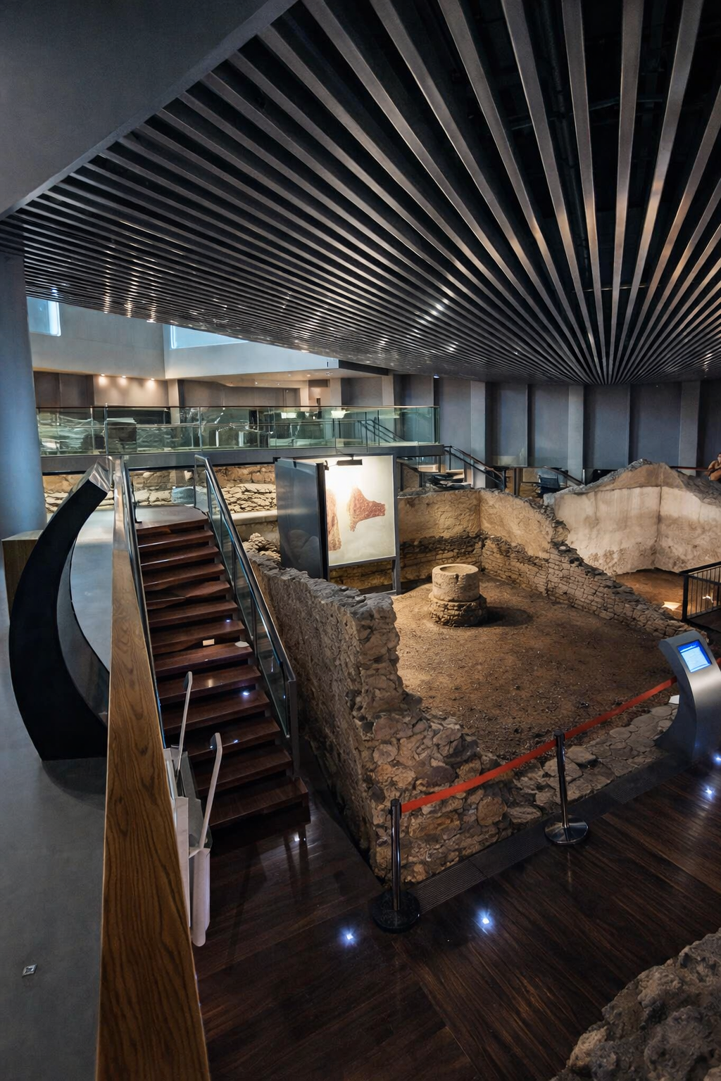 En este museo no sólo se exhibe el patrimonio, se nos relata una historia completa. Primero la de una residencia romana opulenta, un rito misterioso, una pared muy antigua, y una ciudad que persiste en su construcción sin que nadie la pare.