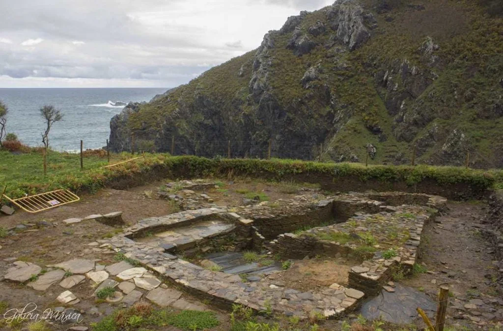 Desde allí comienza el pequeño recorrido hacia el mar. El camino ya merece la pena por sí solo, pero hay un punto que no deberías pasar por alto, el castro que aparece justo antes de descender a la cala.