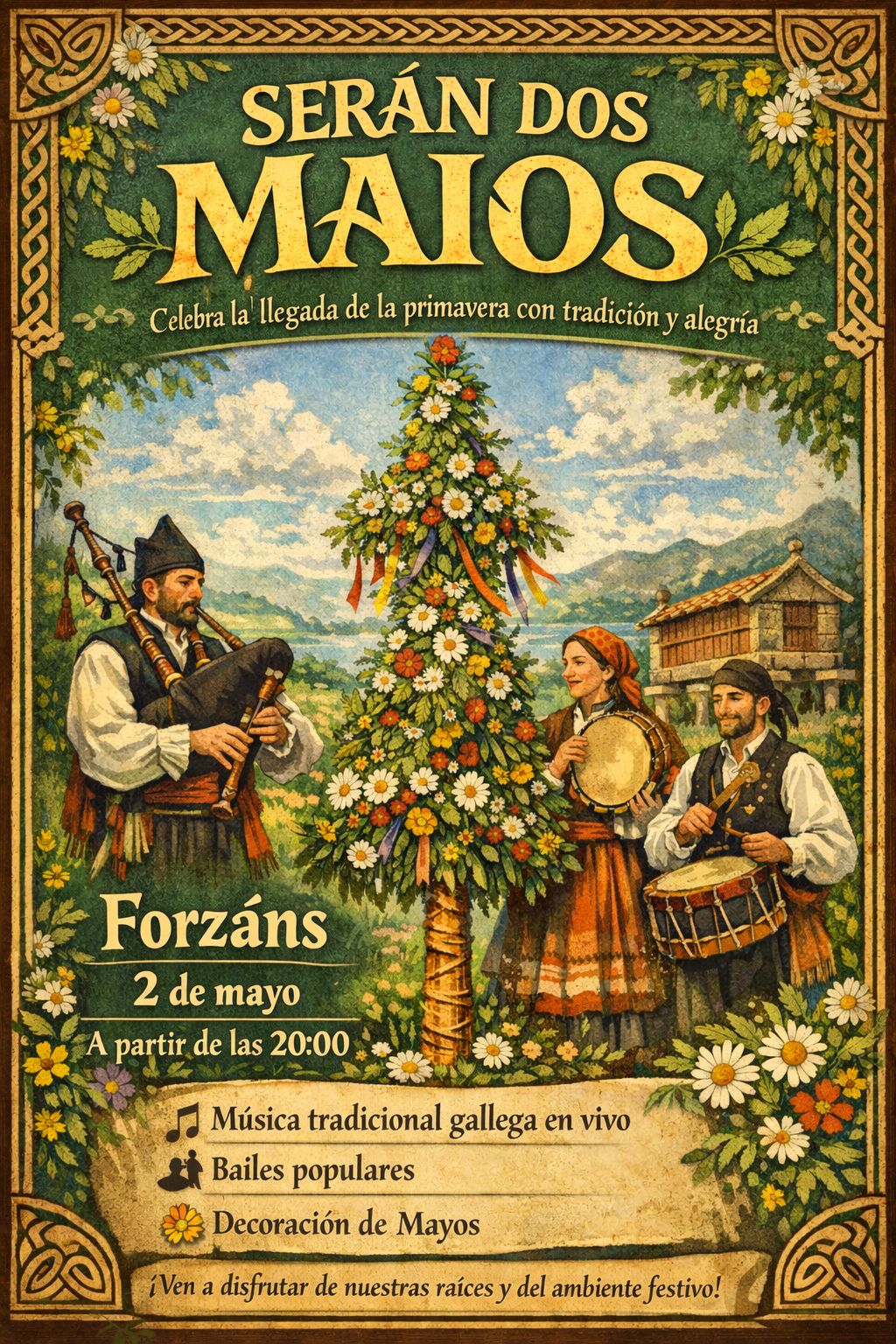 La tradición de «Os Maios» es una de las celebraciones más antiguas y singulares de Galicia, especialmente viva en localidades como Ourense, Vilagarcía de Arousa o Pontevedra, Poio, O Porriño, Vilaboa….Canido, Lourenza.
