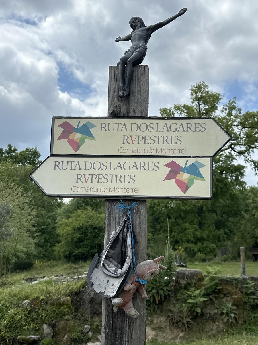 Cruzando un viñedo aparece el lagar do Pinal, y luego….os dejo unos cuantos en fotos del track…el que más os llamará la atención es Xan Preto, que se muestra como un museo al aire libre con su reconstrucción.