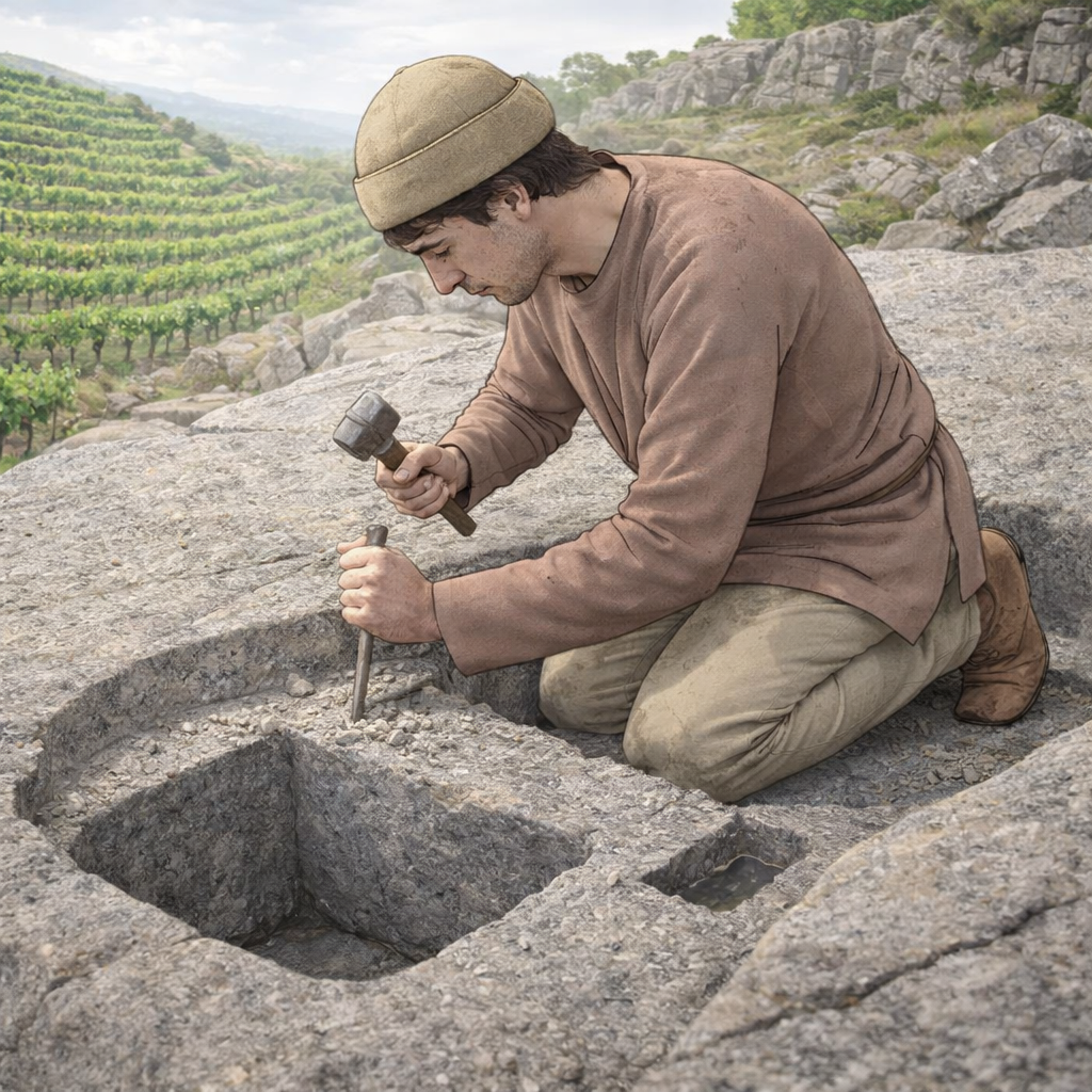 2. Lagares de prensado con pórtico o contrapeso: que usaban estructuras de madera o piedra para prensar el mosto con más fuerza que solo el pisado.